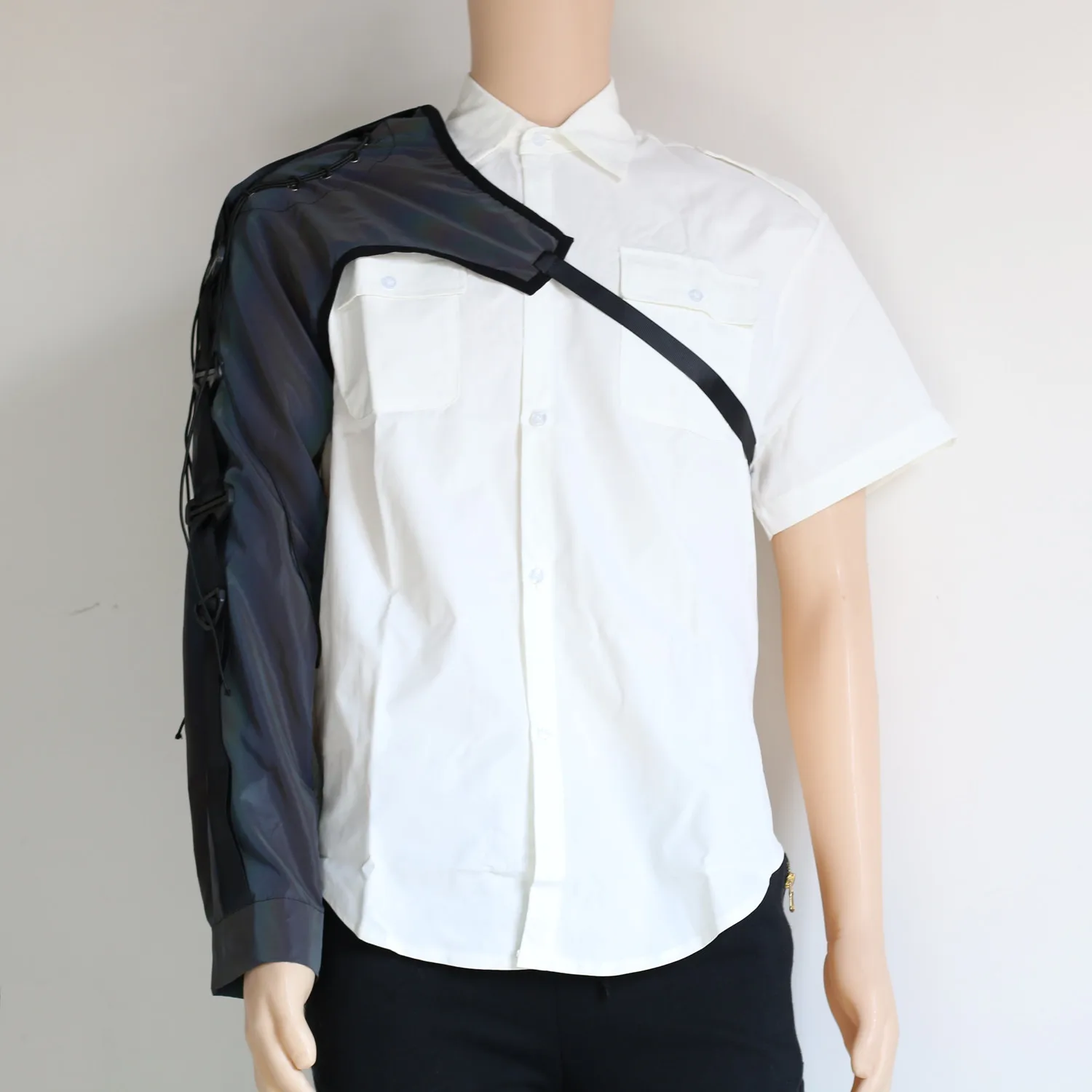 Defy the ordinary with our Low Key Asymmetric Reflective Sleeve! This cosmic fashion rebel piece features a one-shoulder design that catches light and attention in equal measure. Perfect for night adventures or standing out in any crowd, it's your secret weapon for turning heads while keeping it playfully cool. The universe called—it wants its style back!