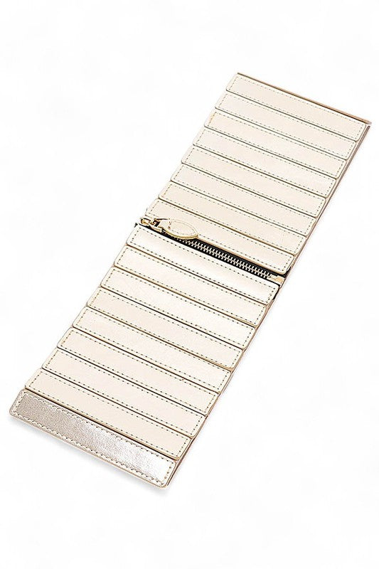 Elevate your outfit with this Metallic Stretch Zip Up Corset Belt, designed to catch every eye. Its shimmering metallic finish adds a luxe touch while the zipper detail amps up the bold factor. Stretchy and snug, it shapes your waist effortlessly, making any look instantly unforgettable and fun. Perfect for turning heads and adding a bot of sophistication to your style.