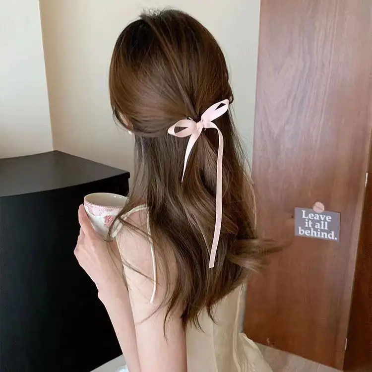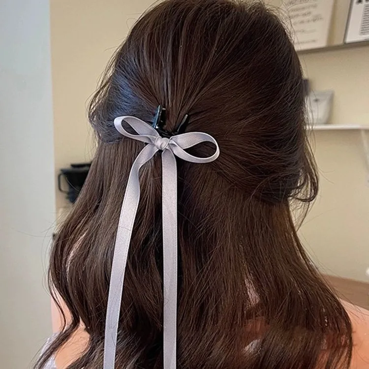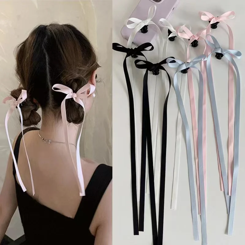 Prima Ballerina 2Pcs Long Tassel Bow Ribbon Hair Clips Accessories