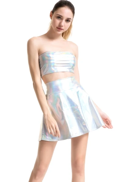 Embrace your wild side with our Sexy Metallic Strapless Bandeau! Whether you're hitting a rave, club, or concert, this stretchy tube top will show off your figure and add a touch of fun with its holographic shine.